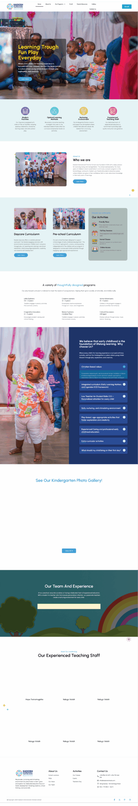 Kadosh Christian Kindergarten approached me to create a warm, child-friendly, and informative website that reflects their identity as a faith-based early childhood learning center. The goal was to build a digital platform that communicates trust, excellence, and the nurturing environment they provide for young learners.